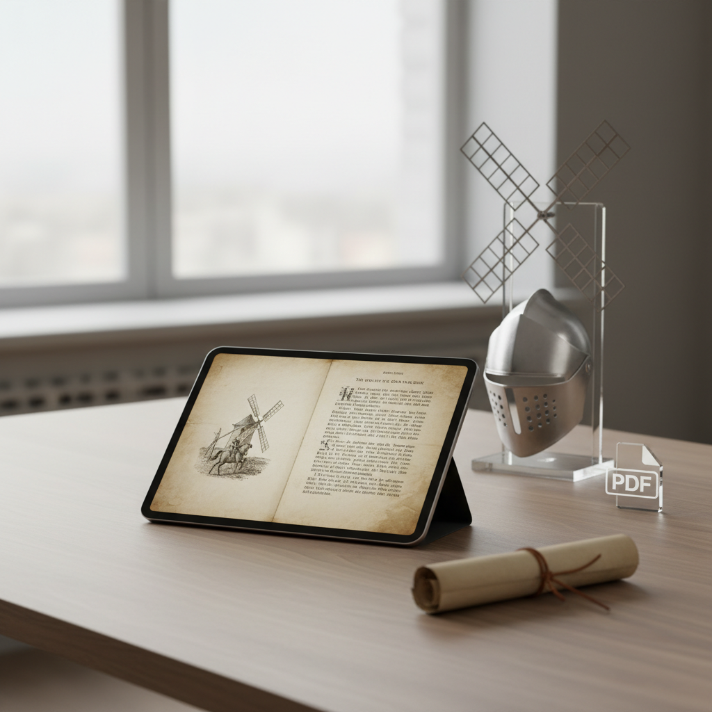 Be to, skaitydami „Don Kichotą“ originalia forma (ar geru vertimu), pamatysite, kiek daug šiuolaikinės kultūros elementų kilo būtent iš čia. Posakis „kovoti su vėjo malūnais“ tapo bendriniu, reiškiančiu beviltišką kovą su įsivaizduojamais priešais ar neišvengiamomis aplinkybėmis. PDF formatas leidžia lengvai atlikti paiešką tekste, žymėtis citatas ir analizuoti šiuos kultūrinius klodus be būtinybės vartyti tūkstančius popierinių puslapių.