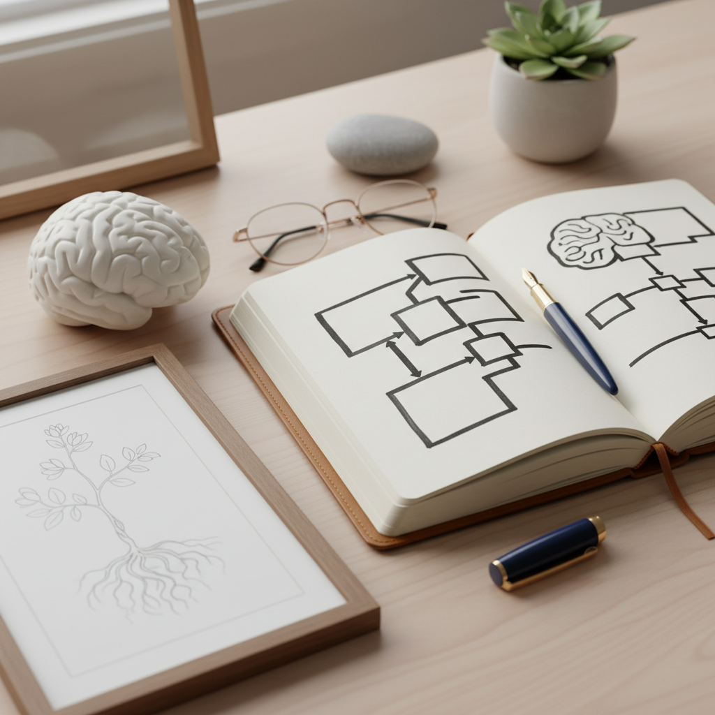 Ši laisvė skatina nelinearinį mąstymą. Daugelis geriausių idėjų gimsta ne tvarkinguose sąrašuose, o chaotiškuose minčių žemėlapiuose, kuriuos lengviausia sukurti ant tuščio popieriaus lapo.