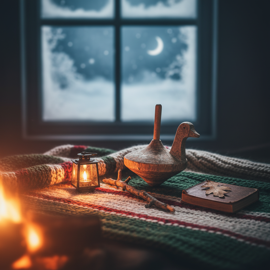 Viena pagrindinių priežasčių, kodėl „Senelės pasaka“ sukelia tokią stiprią nostalgiją, yra meistriškai sukurtas kontrastas tarp atšiaurios išorės ir saugaus vidaus. Lietuvių sąmonėje žiema visada buvo ypatingas metas – laikas, kai gamta nutyla, darbai sustoja, o gyvenimas persikelia į namų vidų, arčiau ugnies. Eilėraštis prasideda nuo šalčio ir sniego vaizdinių („baltą sniegą verčia“), kurie sukuria grėsmės, bet kartu ir grožio pojūtį. Tačiau šis šaltis lieka už lango, o viduje karaliauja šiluma.